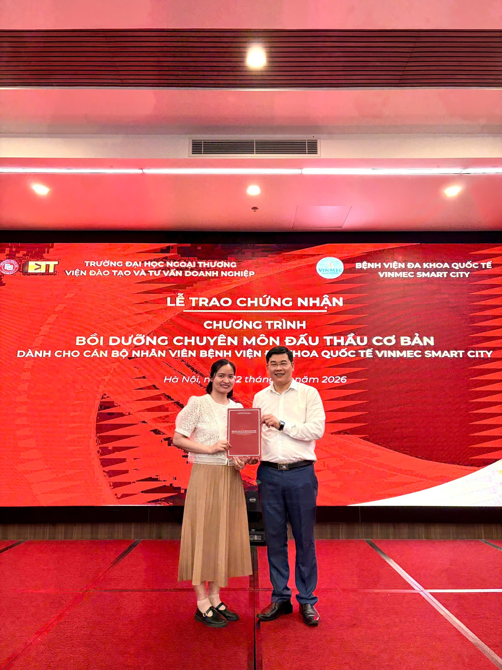Sự phối hợp giữa Bệnh viện Vinmec Smart City và Viện Đào tạo và Tư vấn doanh nghiệp, Trường Đại học Ngoại thương đã góp phần tạo nên một chương trình bồi dưỡng có tính hệ thống, chuyên sâu và thiết thực, đáp ứng đúng nhu cầu nâng cao năng lực của đội ngũ cán bộ trong bối cảnh hiện nay.